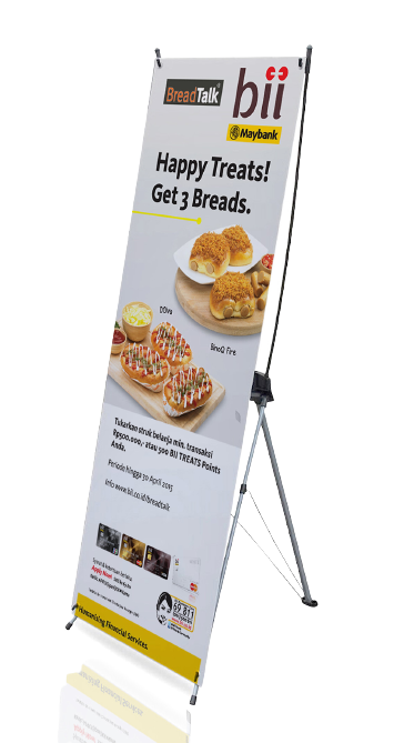Media cetak digital yang biasanya digunakan untuk menampilkan informasi tentang acara atau promosi pada bahan yang fleksibel atau albatross dengan penyangga berbentuk X.